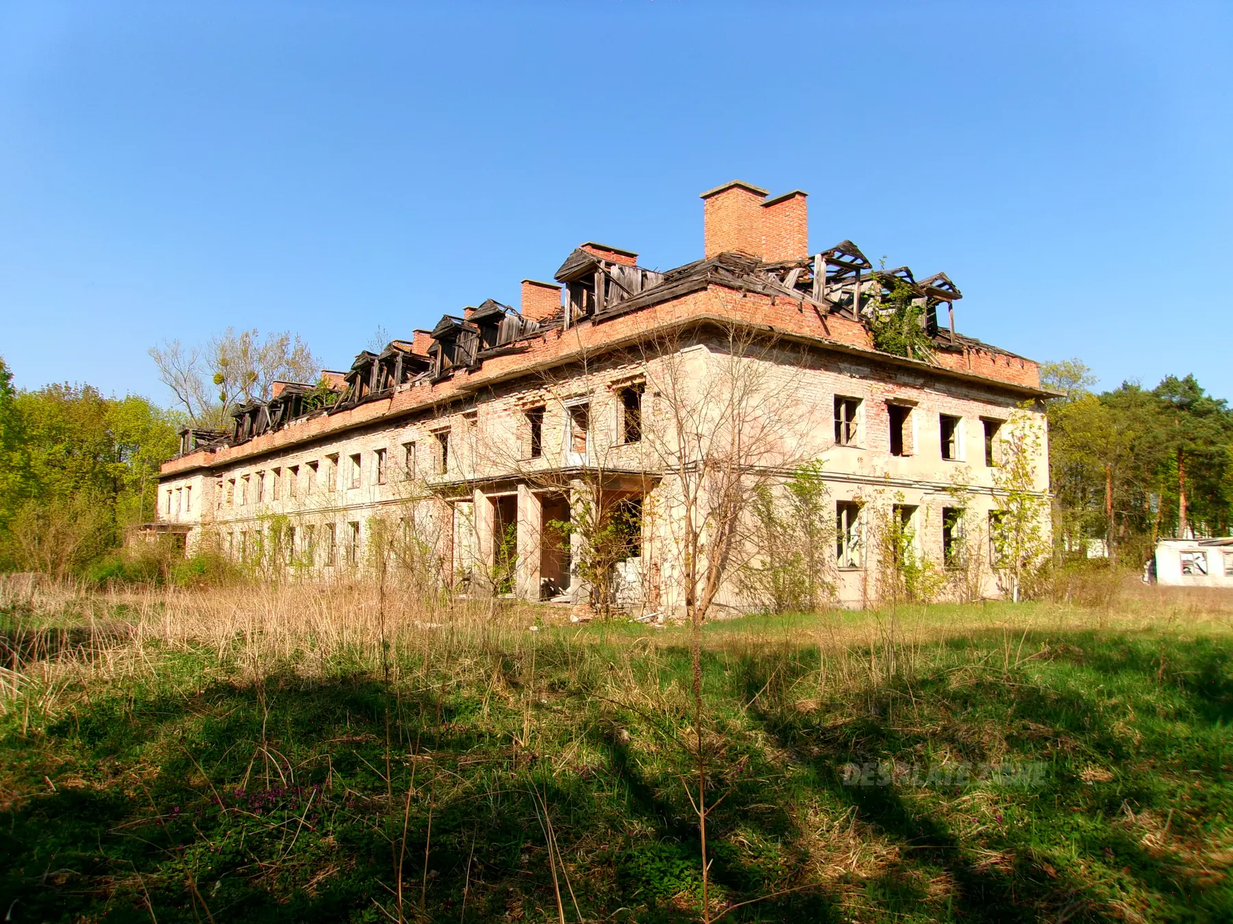 Technicznie wejść tu łatwo; problem tylko w tym, że jest piesek (a może nawet dwa?). Jak tylko wszedłem do jednego z budynków psisko zaczęło ujadać. Pies nie jest puszczony samopas (od zachodu teren nie jest ogrodzony, więc mogłoby tamtędy wybiec poza obiekt); siedzi za płotem, ale wciąż, hałas, który robi zaalarmować może ochronę - której bądź co bądź nie zauważyłem, ale to nie znaczy przecież, że jej nie ma. W budynku bez okien i ze spalonym dachem (ten większy) kamer nie widziałem; możliwe, że są w/na tym drugim, będącym w lepszym stanie. Wewnątrz też pustki, więc idk czy warto tu wchodzić w ogóle. Może chociażby, żeby ciekawość zaspokoić lol.