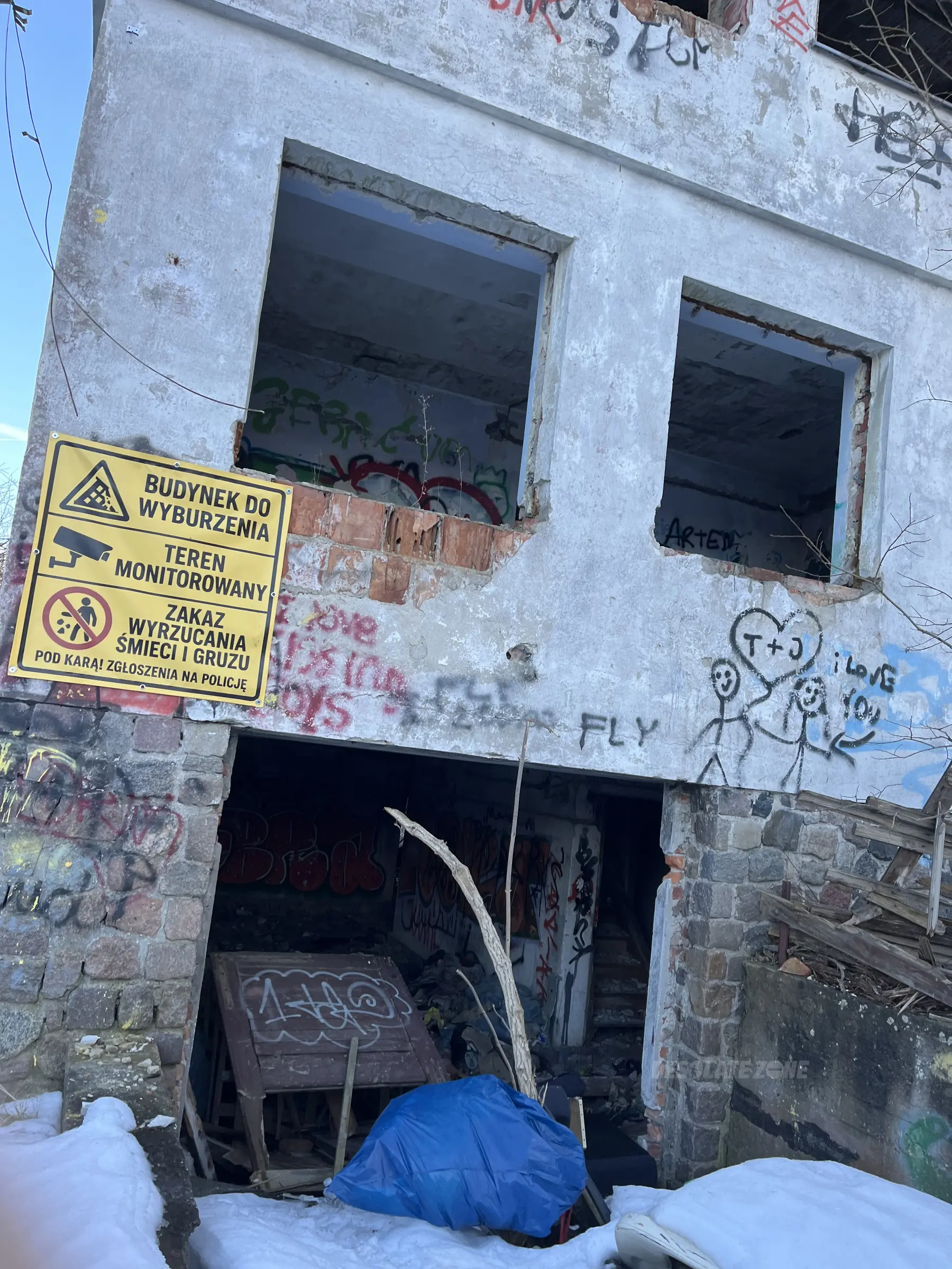 Opuszczona willa zamienia się już w ruinę, dużo graffiti.