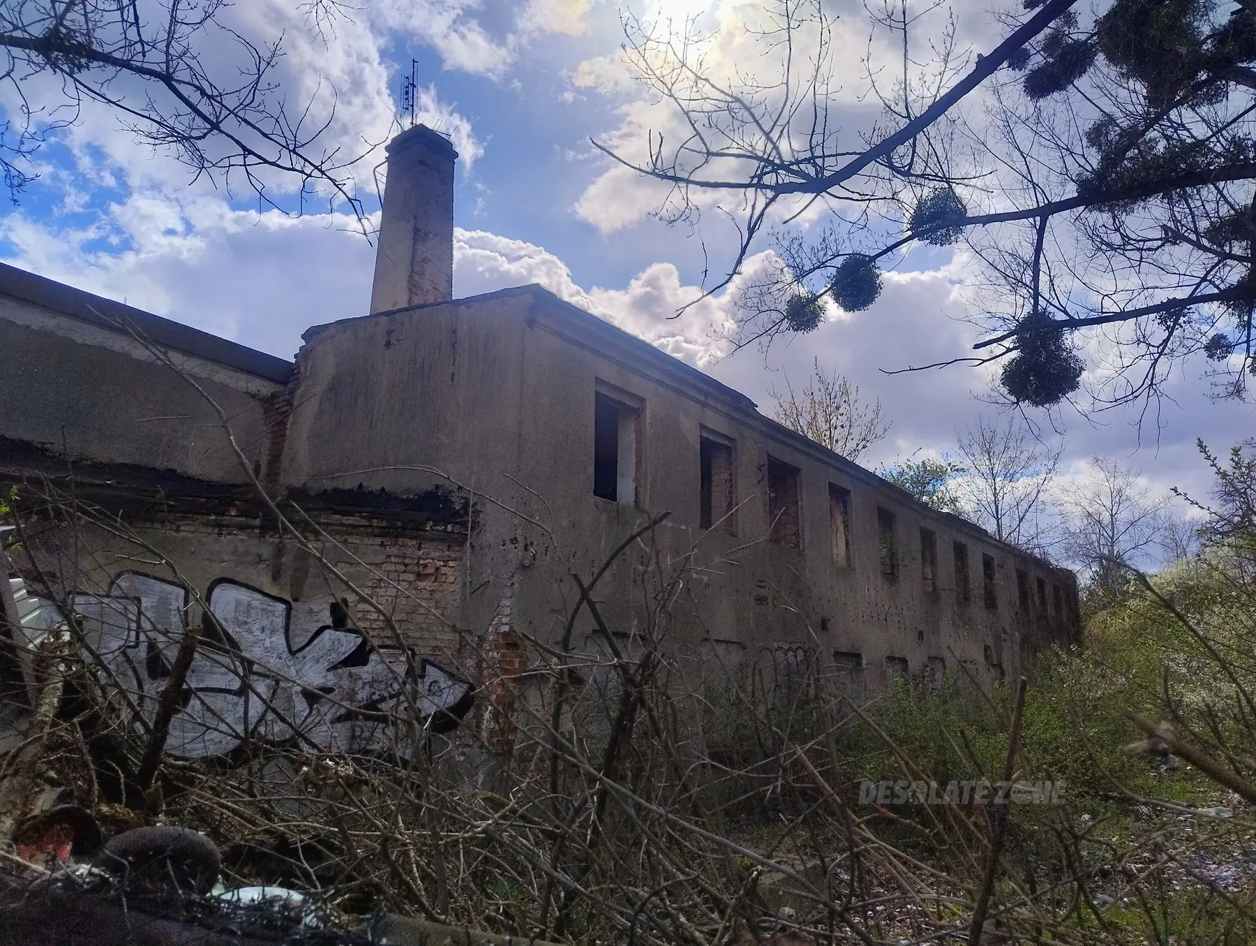 Opuszczony budynek z kominem wejscie latwe wytarczy przeskoczyc plot jednak jest on od strony rzgowsksiej przez co jest tam duzy ruch malo atrakcyjne miejsce ale spoko spot do posiedzenia sobie na dachu
