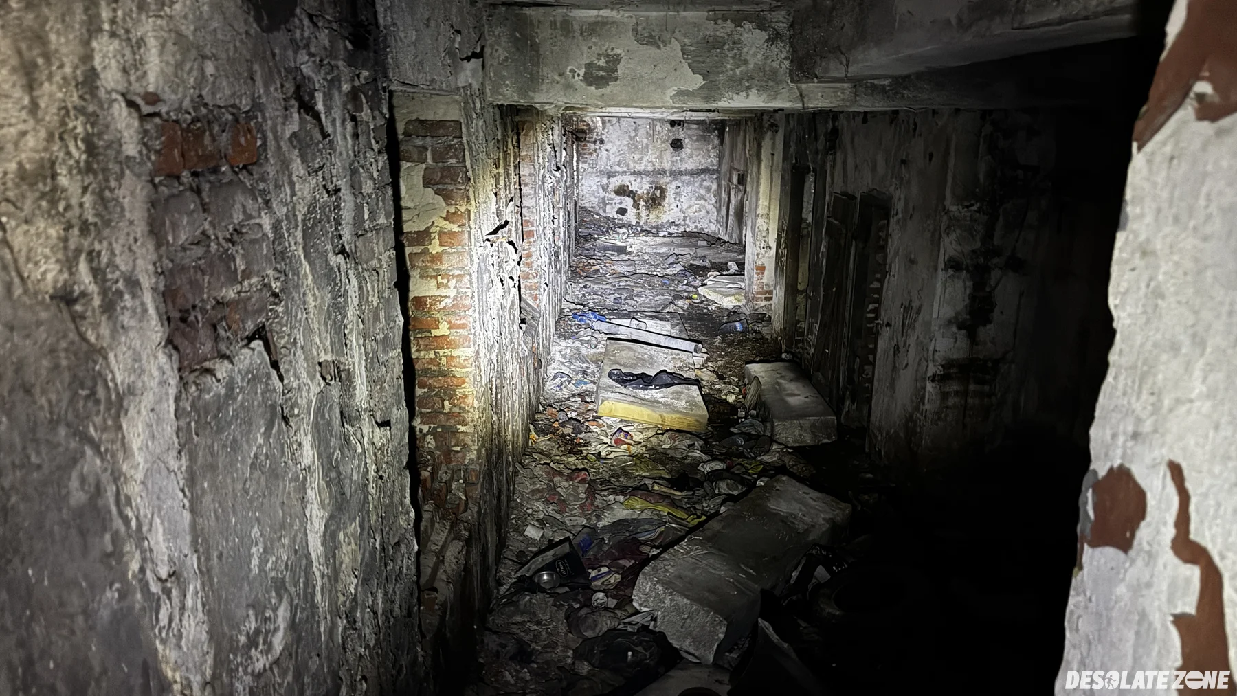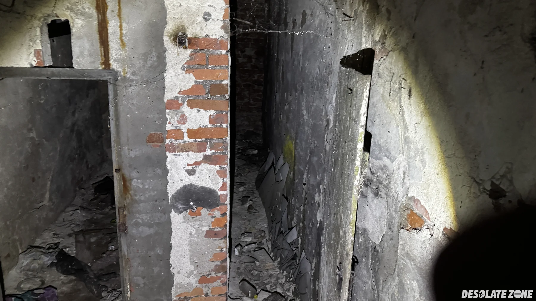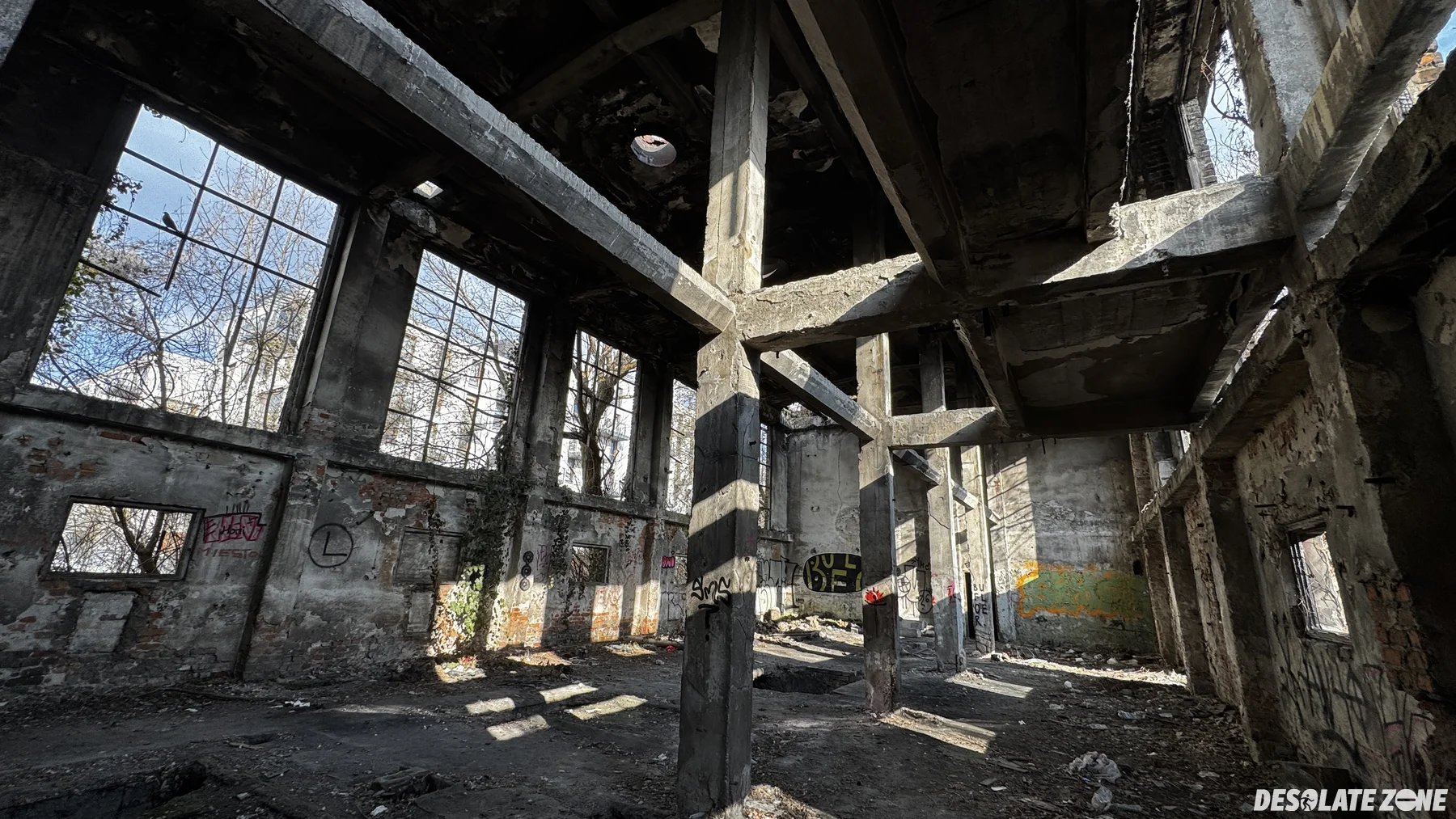 Dość stara hala produkcyjna z czerwonej cegły. Wejście banalne od strony placu zabaw. W środku nic specjalnego i podłoga podziurawiona. Obok tego budynku znajduje się też drugi, a dostęp do niego przez mocno dziurawy płot i otwarte drzwi. To ostatnie budynku z jakiegoś zakładu, który tam funkcjonował zanim zaczęli wyburzać i stawiać bloki. Pewnie niedługo te dwa budynki też zostaną wyburzone. Budynek w pełni podpiwniczony, ale wszystko zawalone śmieciami.