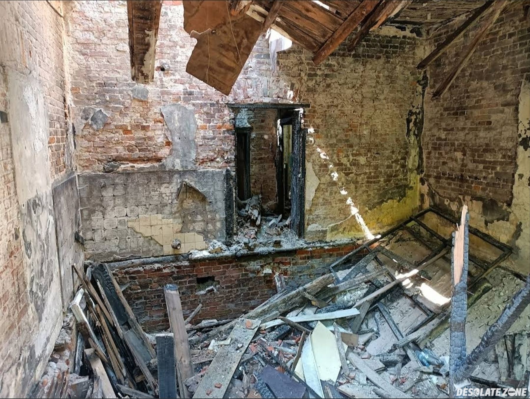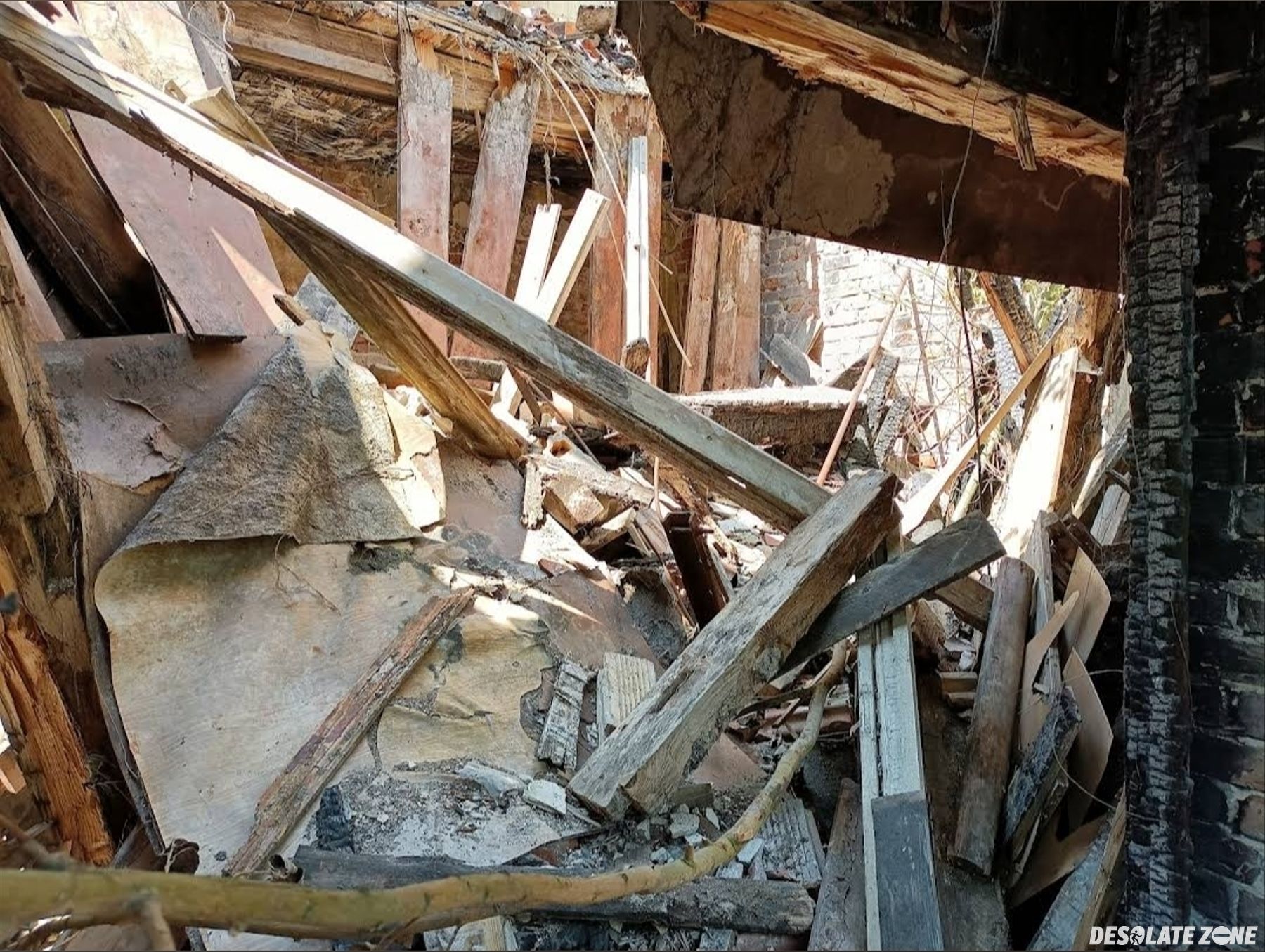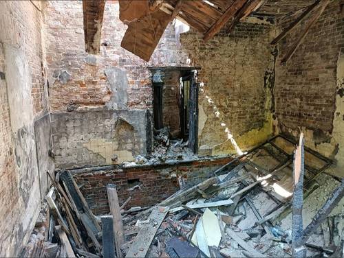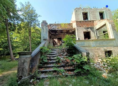 Opuszczony, zawalony i spalony dworek/willa