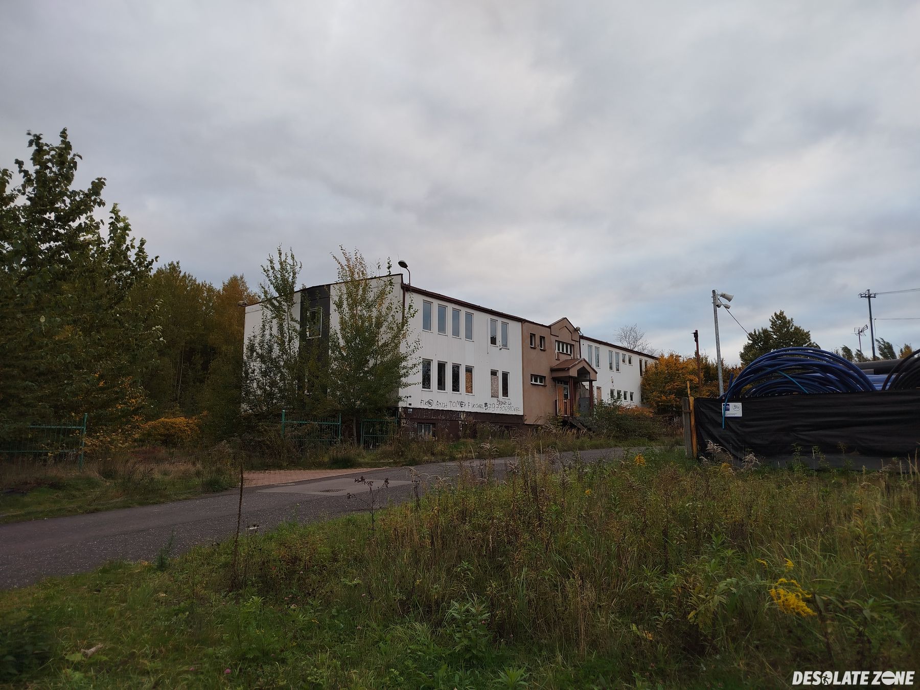 Dost臋p na teren obiektu bezproblemowy. Wystarczy znale藕膰 jedn膮 z kilku dziur w ogrodzeniu. Do samego budynku brak dost臋pu
