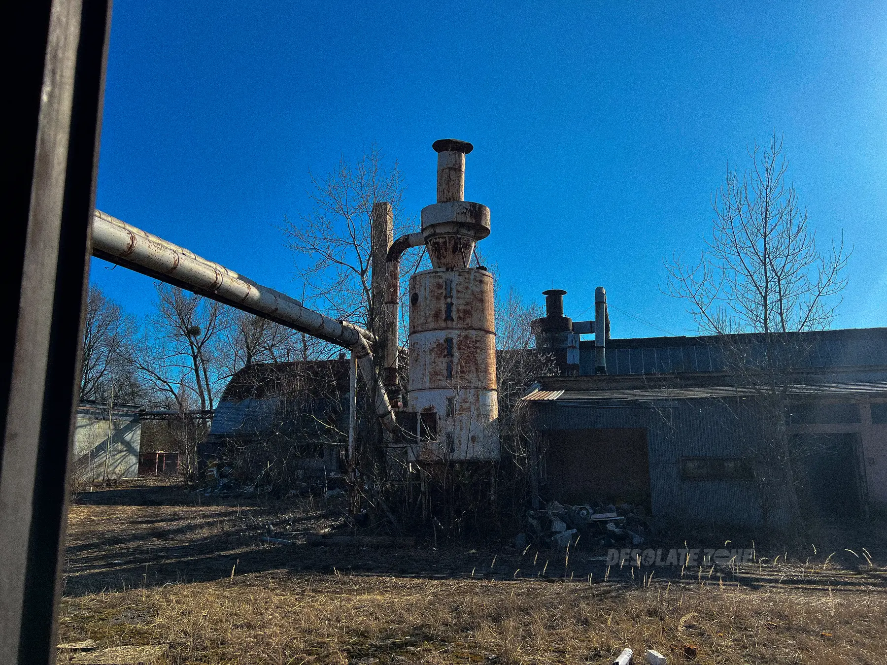 Łatwe wejście, w krzakach jest wydeptana ścieżka do stolarni. Miejsce jest naprawdę duże i składa się z wielu budynków. Bardzo fajna i klimatyczna miejscówka