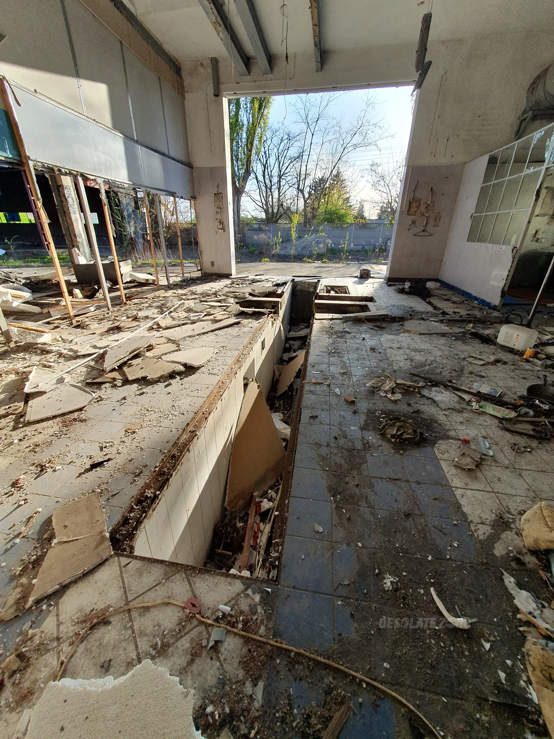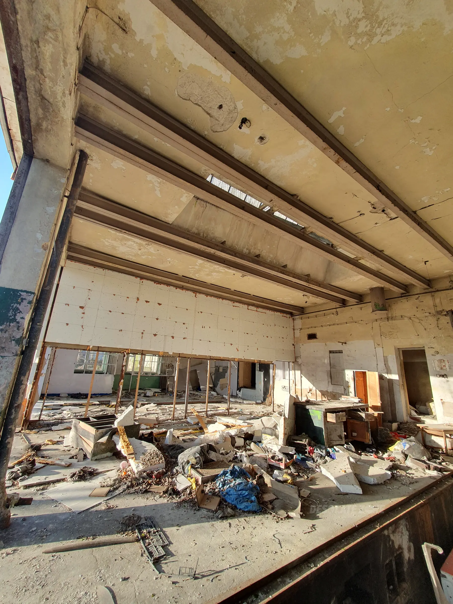 śmierdzi, słaby stan techniczny ale na terenie fajny klimacik post-apo ogolnie fajny spot ale widac ze mieszkaja tam bezdomni i pelno smieci w budynkach.