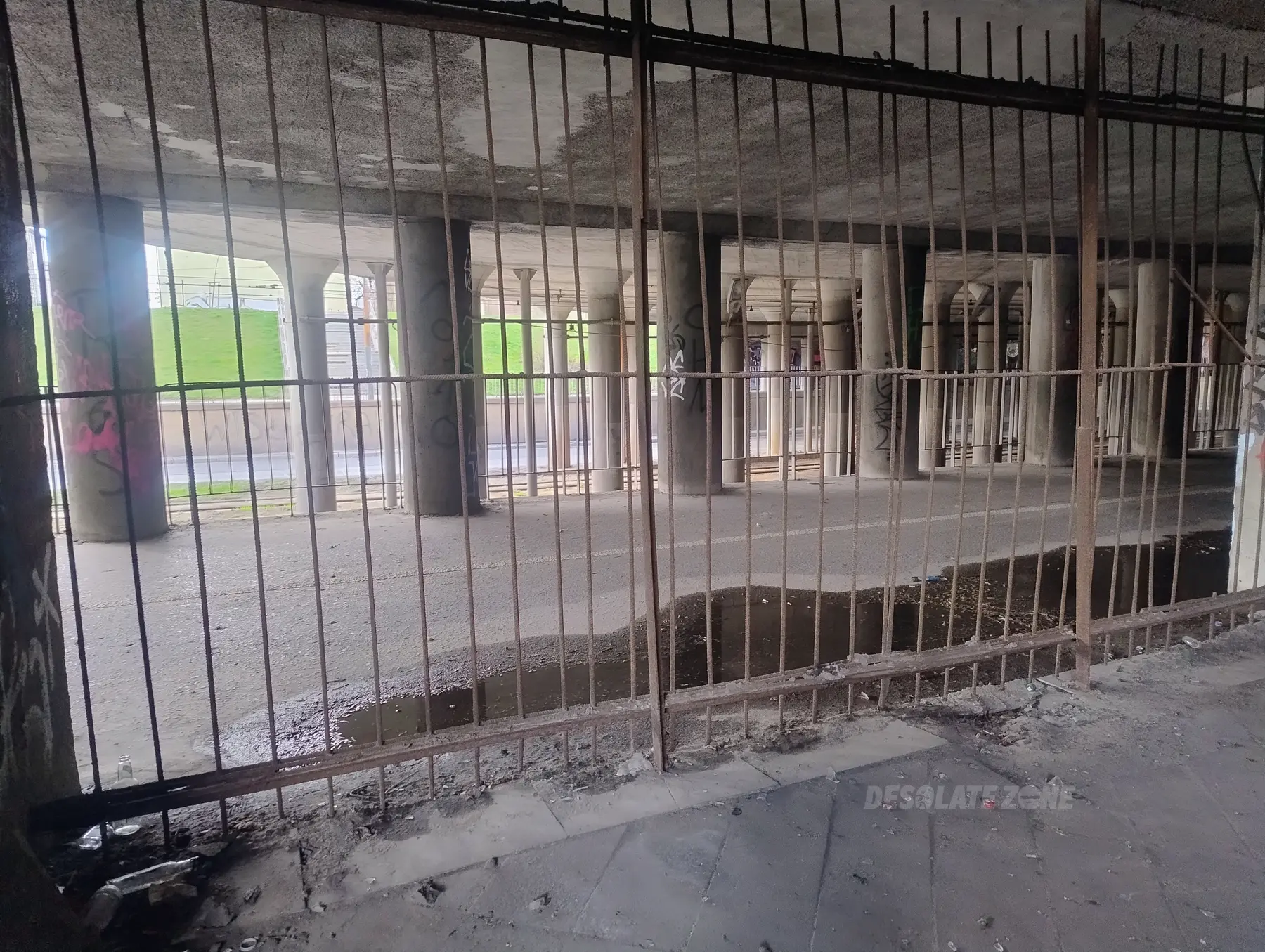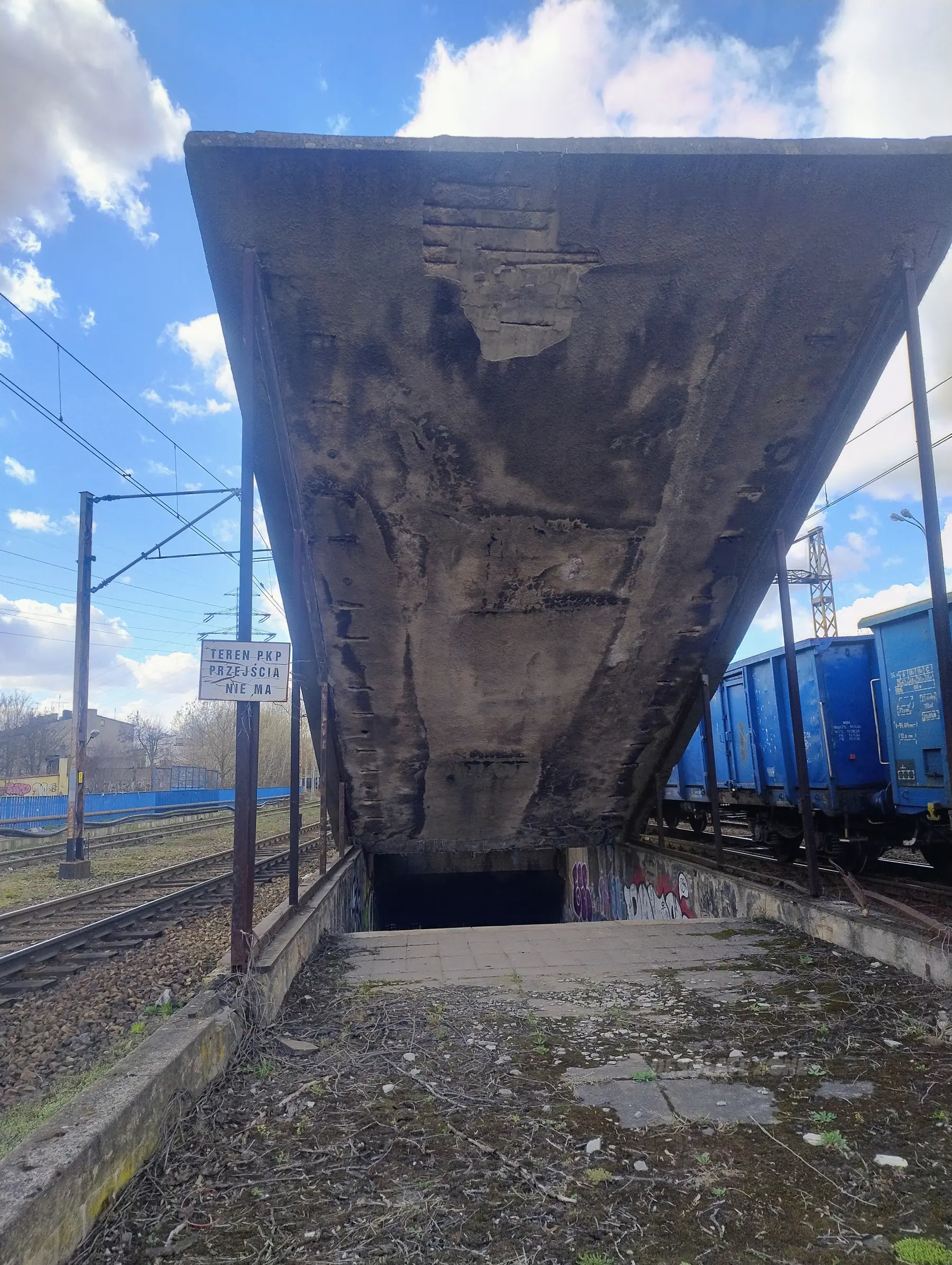 Przejście podziemne przy wiadukcie kolei. Ma dosyć ciekawy kształt i wychodzi na tory. Można wejśc przez dziurę w płocie od Rzgowskiej albo niski płotek od Śląskiej, ale najmniej rzucającym się w oczy (i chyba najbardziej klimatycznym) sposobem jest wejście przez dziurę z boku przejścia podziemnego pod wiaduktem. Poza tym, cóż, nic tam nie ma. Można co najwyżej usiąść na skośnym wejściu do przejścia i cyknąć fotkę.