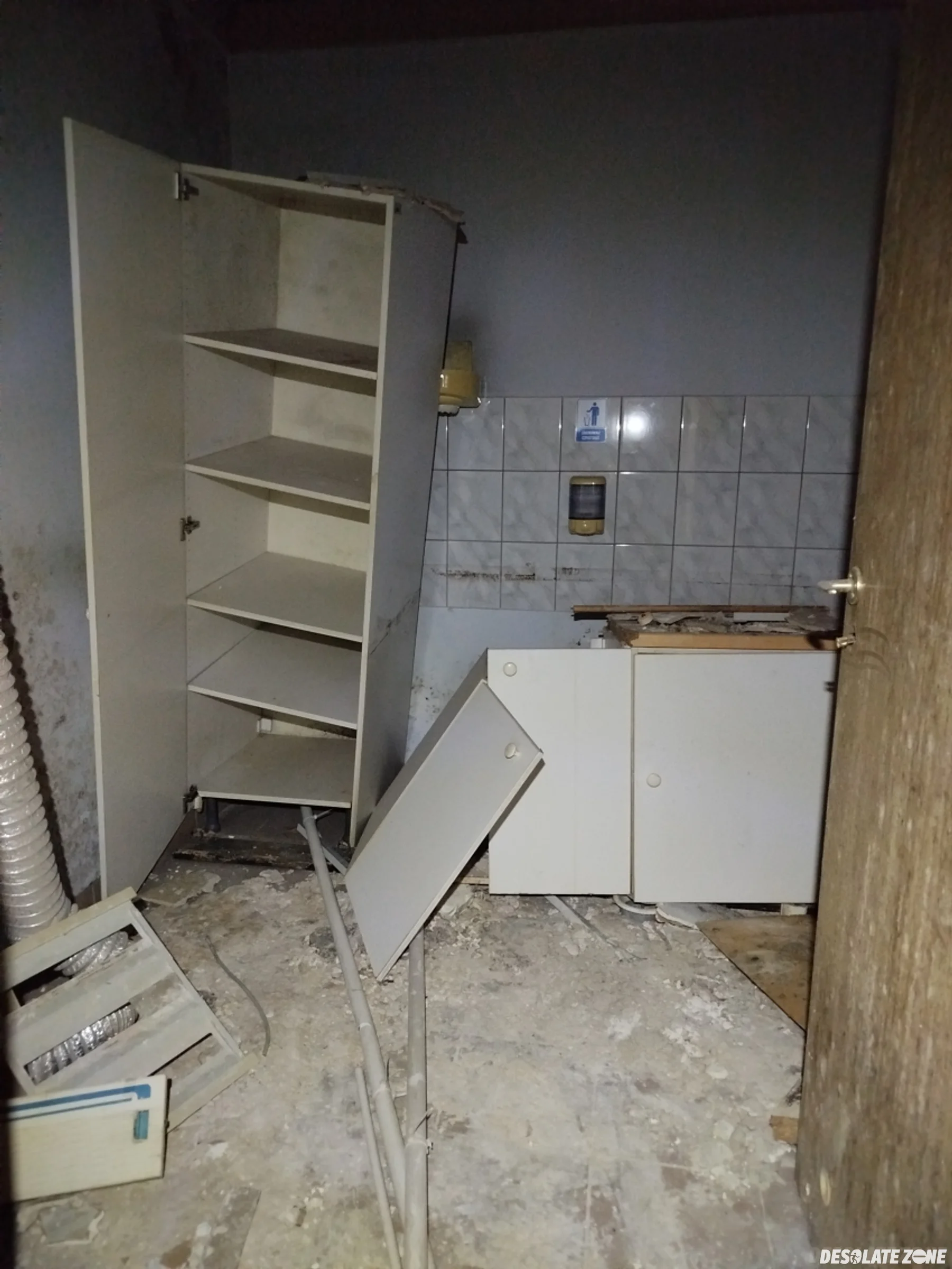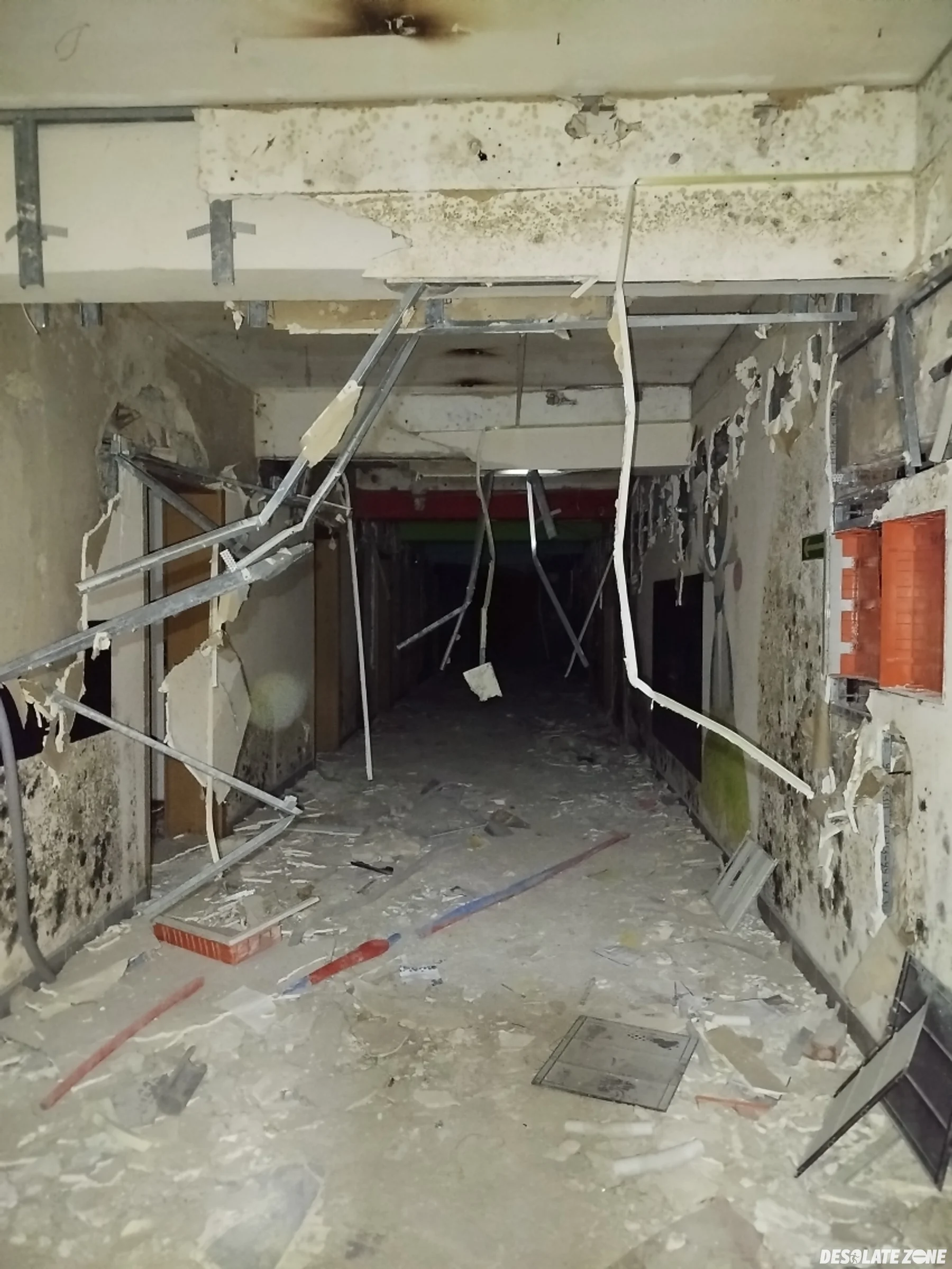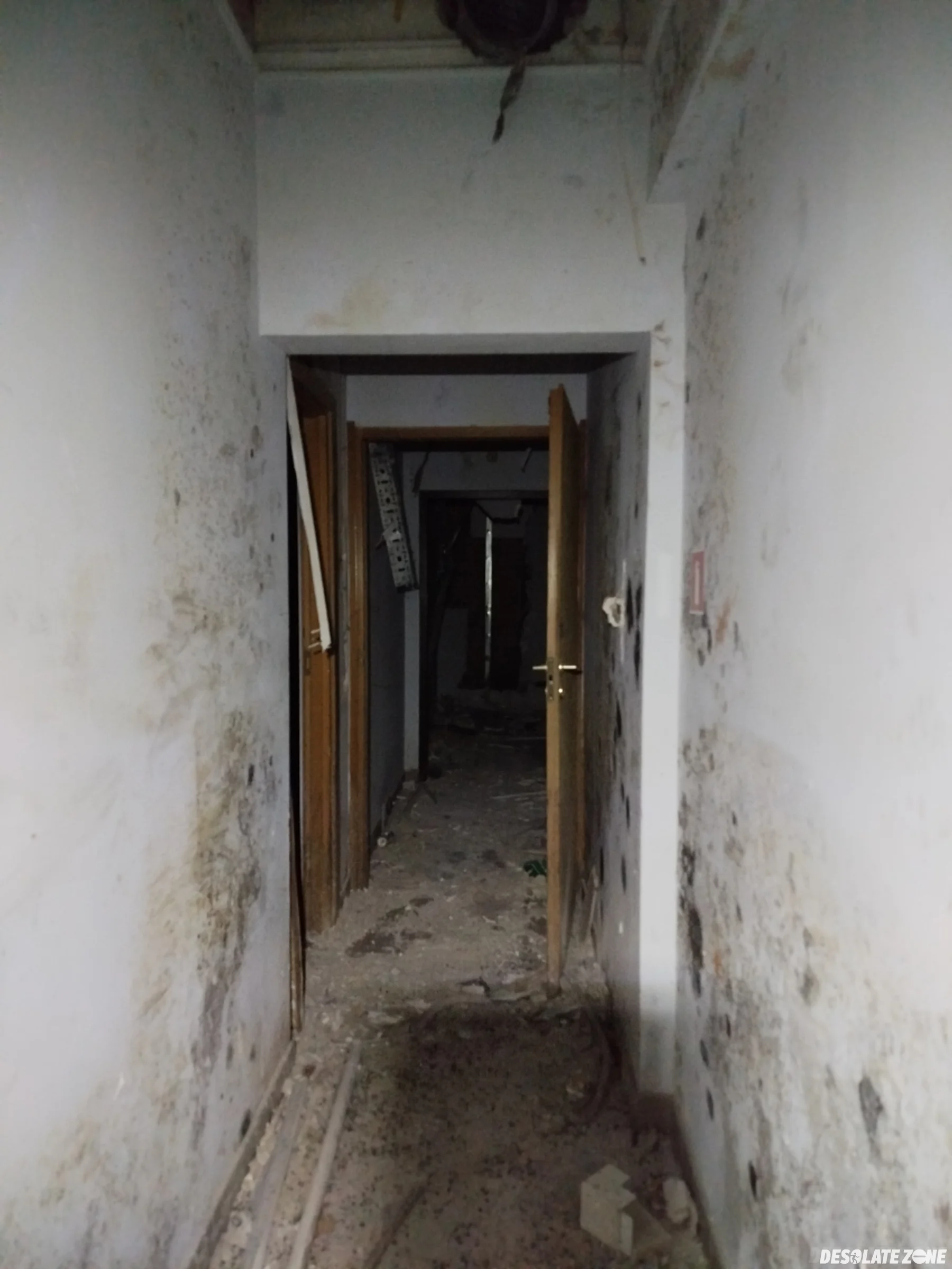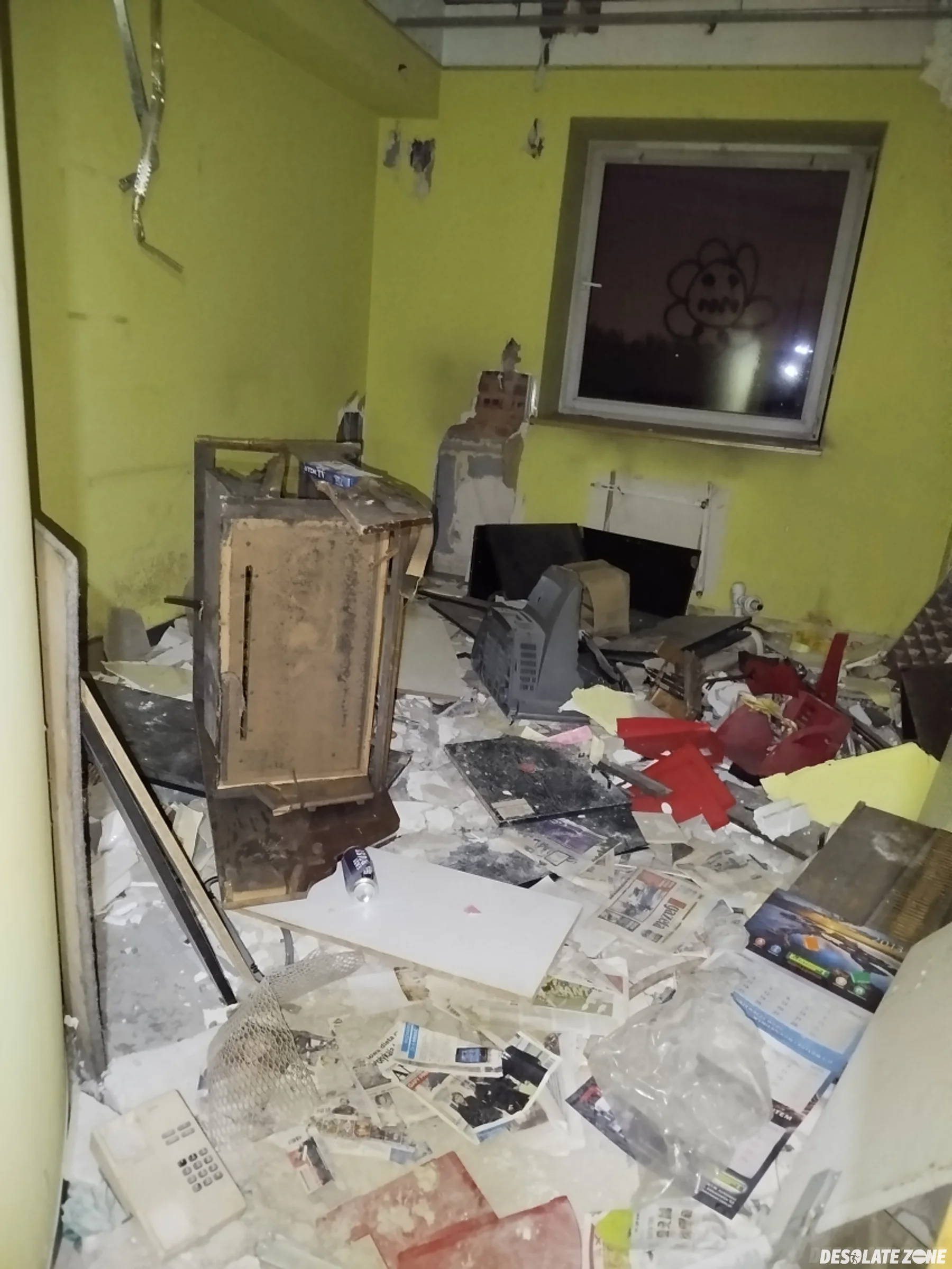 Dużo chodzenia, całe dwa piętra z parterem, ale bez rewelacji. Po prostu zdemolowany budynek z walajacymi się wszędzie karton-gipsami. Widać, że urzęduje i dewastuje okoliczna młodzież. Do piwnic faktycznie brak dostępu z powodu zdemontowanych schodów. Kilka co bardziej ambitnych graffiti i tyle. W budynku obok walają się jakieś stare meble. Zakładam, że zostały przeniesione z głównego budynku, ale też wszystko poniszczone, zarośnięte pleśnią i walnięte byle jak