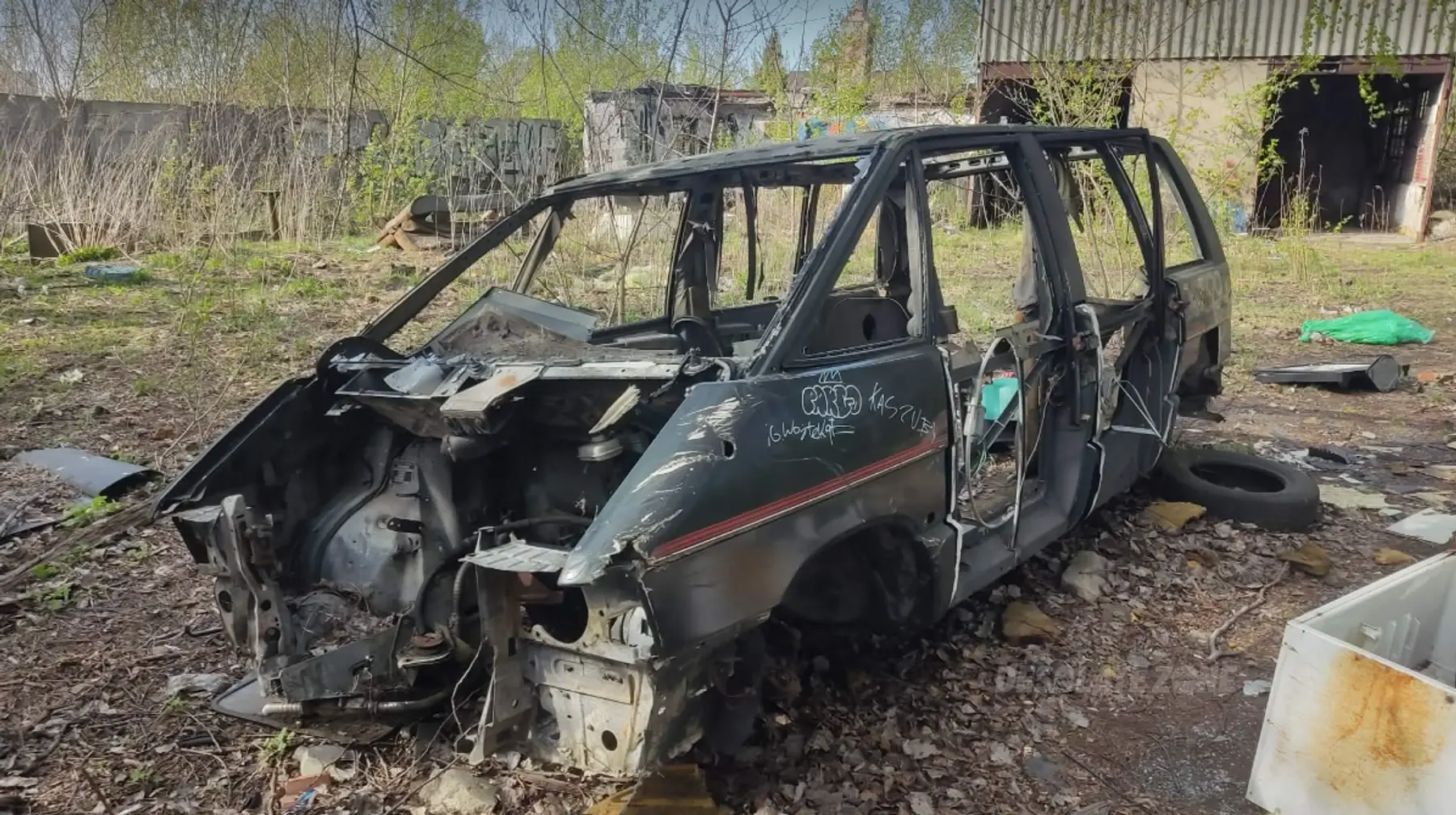 Wejście jest bardzo proste - można wejść zarówno od frontu, przez dziure w płocie, jak i od strony lidla, ścieżką przez las prosto na tyły. W budynku nie zostało nic, najciekawsze co tam jest to wraki aut.