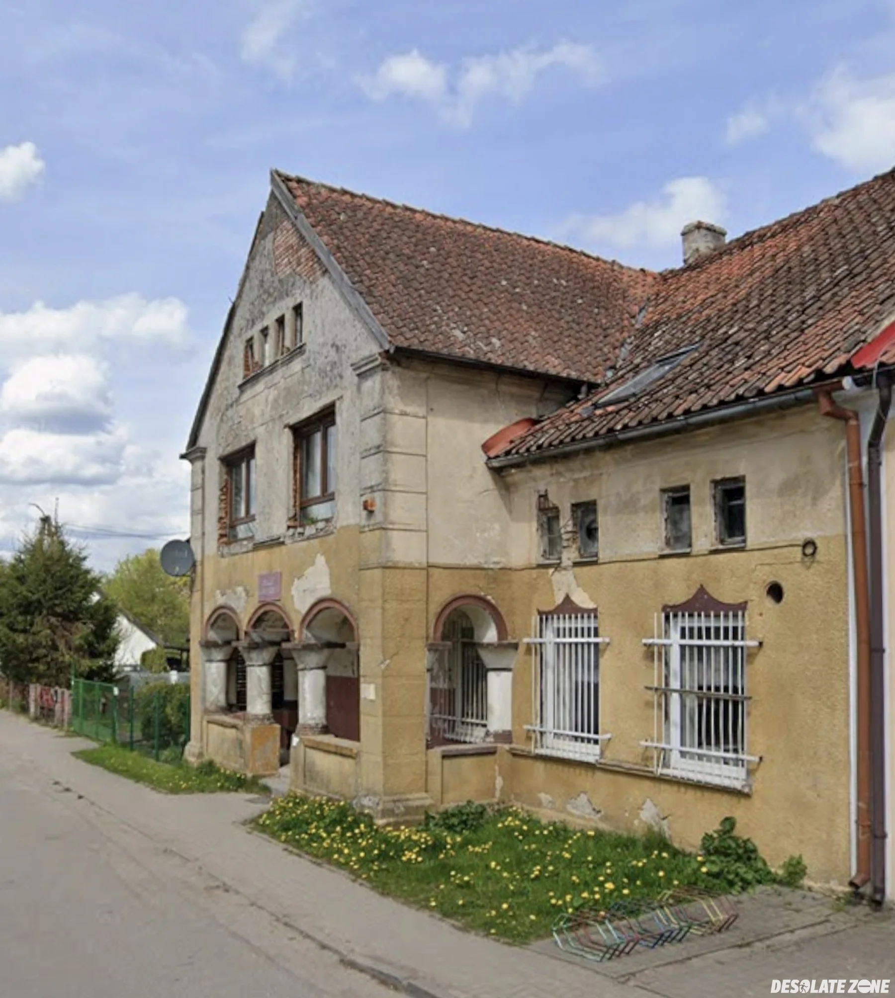 Częściowo opuszczony budynek, kiedyś był tu sklep. W tym samym budynku mieści się OSP i prawdopodobnie jakieś mieszkanie.