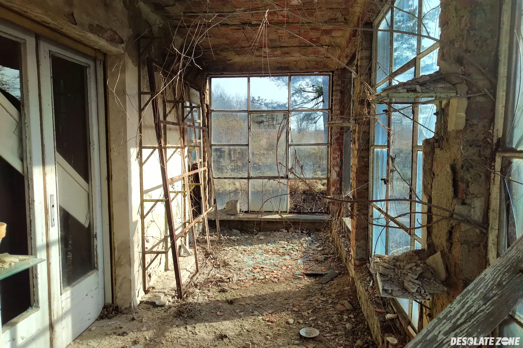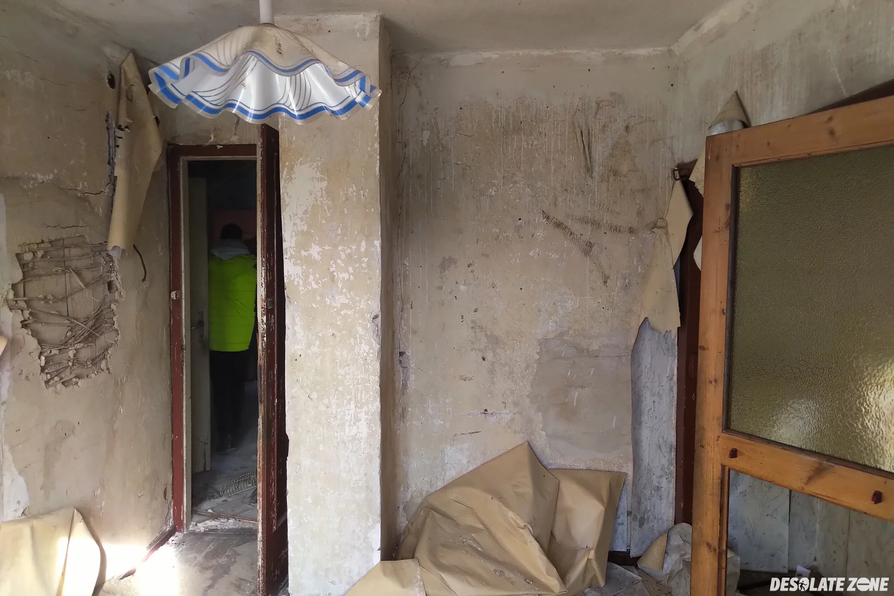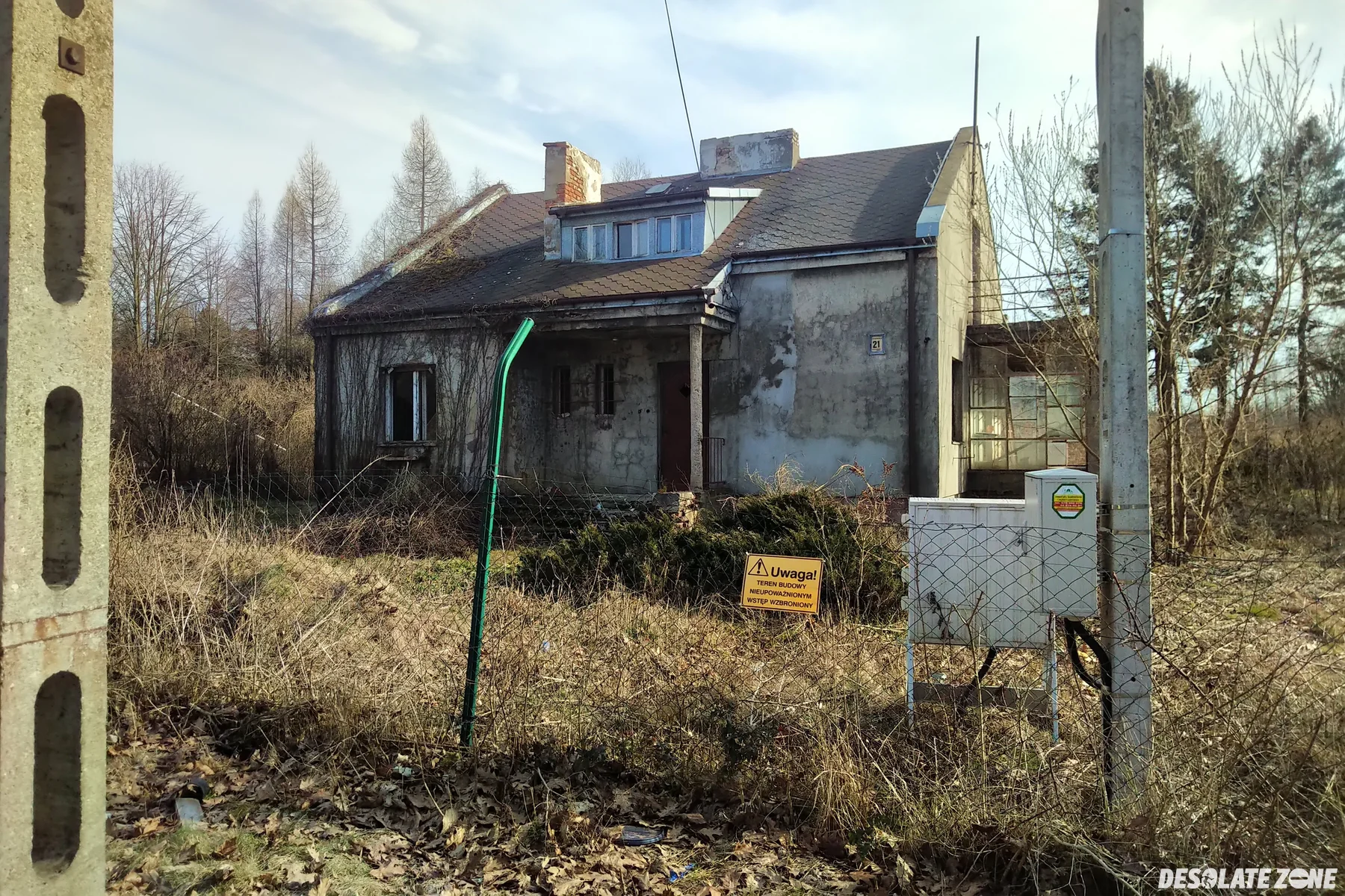 Pzrejście przez siatkę. Wewnątrz pozostałości po domownikach.