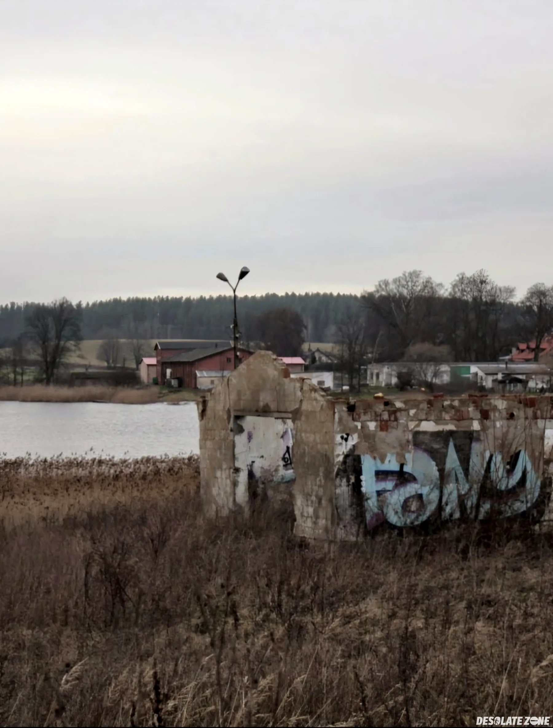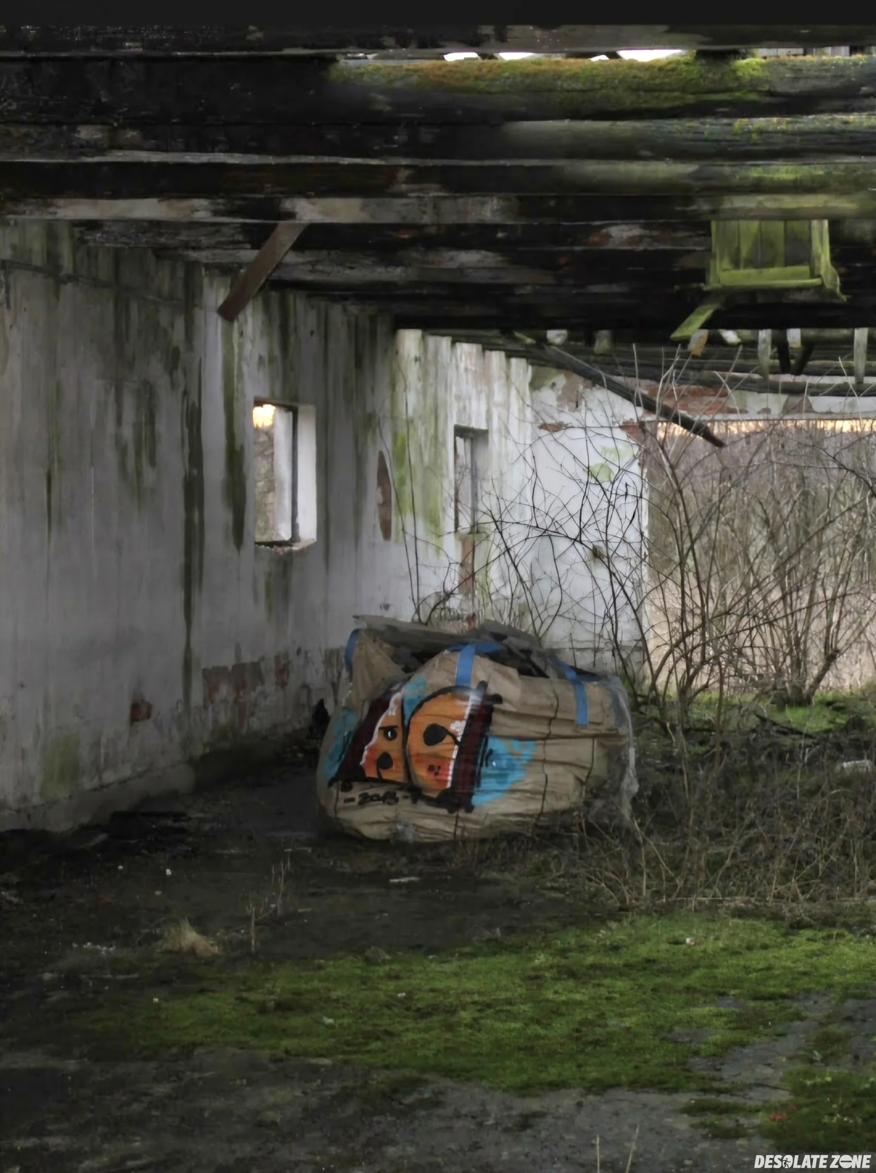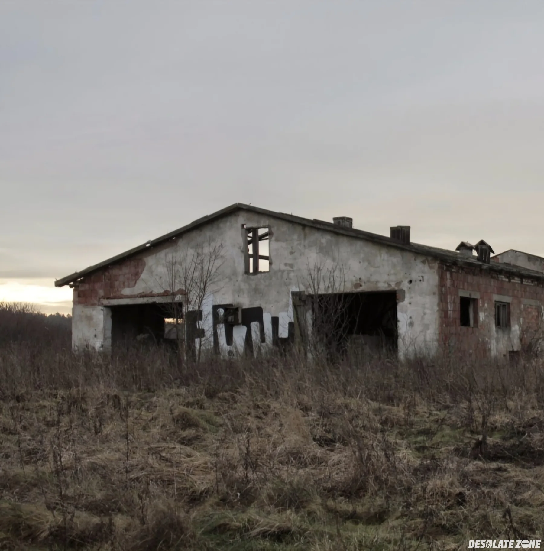 Duży opuszczony stary pgr, dach jest zawalony a dojście raczej utrudnione