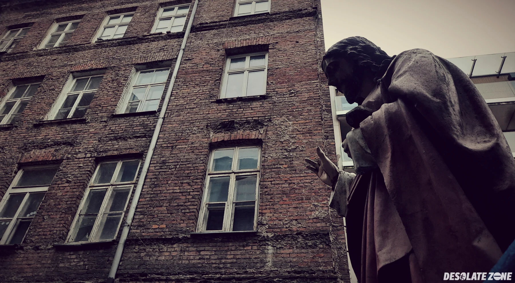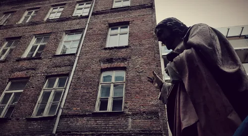 Kamienica z figur膮 na podw贸rku