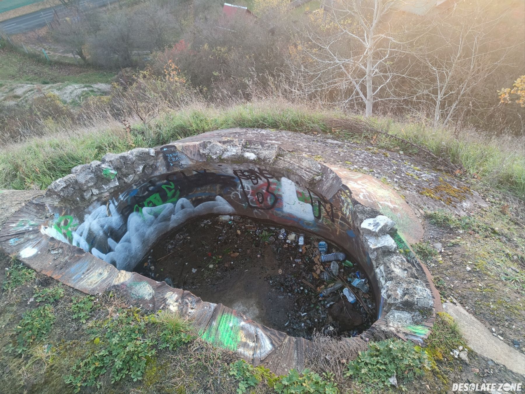 Można wejść na luzie przez rozwalone ogrodzenie, w środku jest mnóstwo śmieci po mieszkańcach.