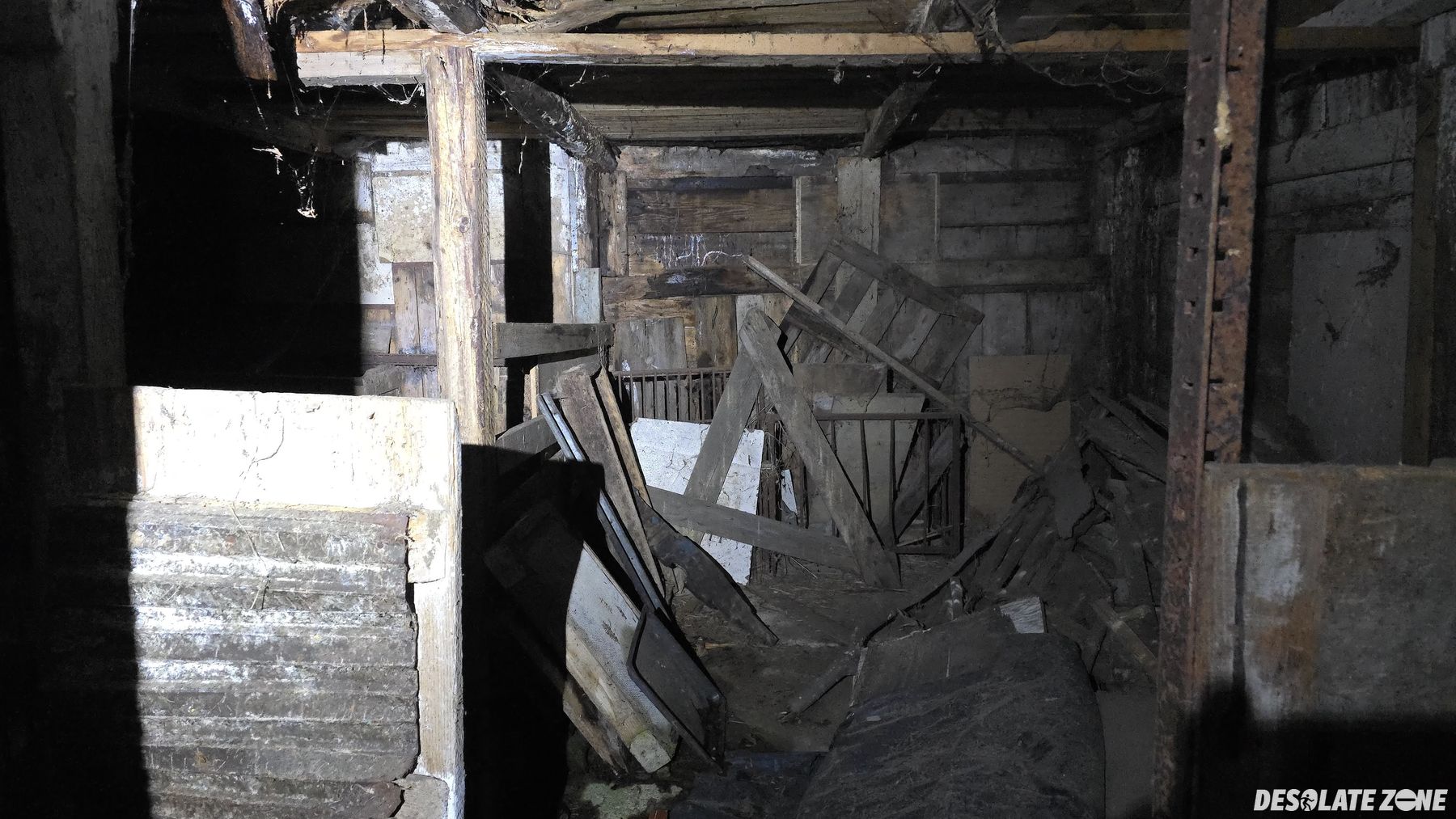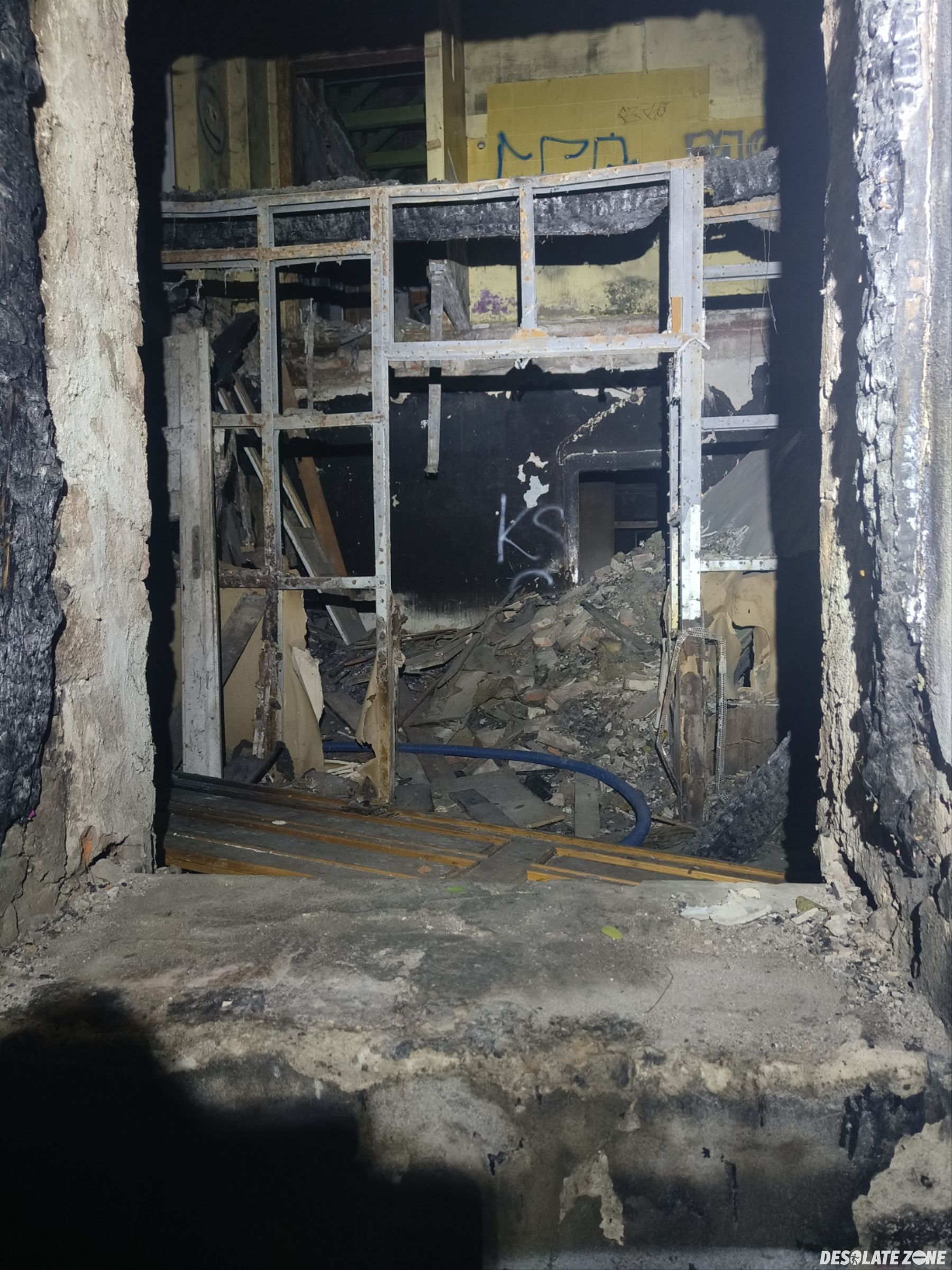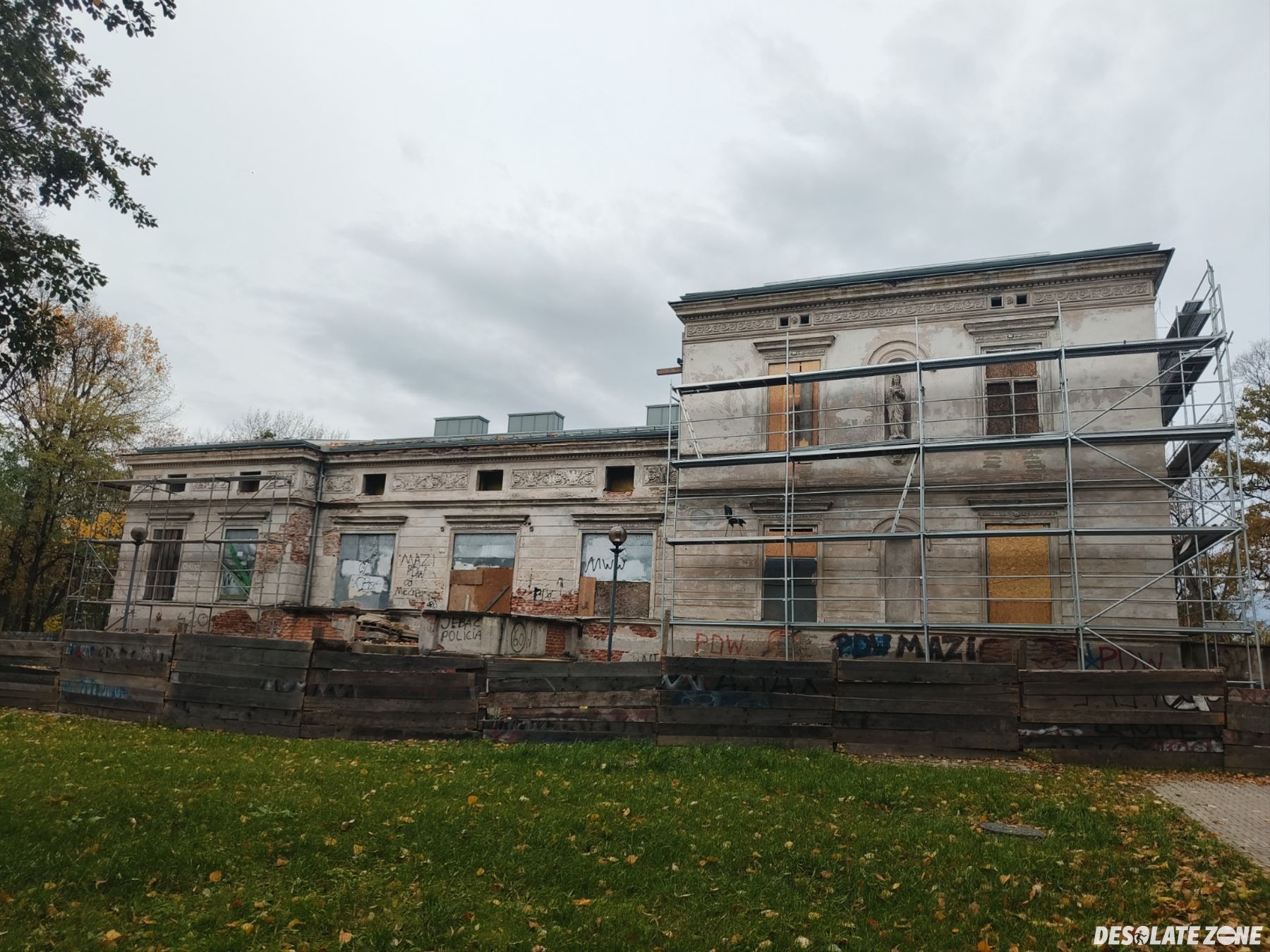 Można zwiedzić partery i pierwsze piętra wejścia na wyższe piętra są zabezpieczone płytami OSB.