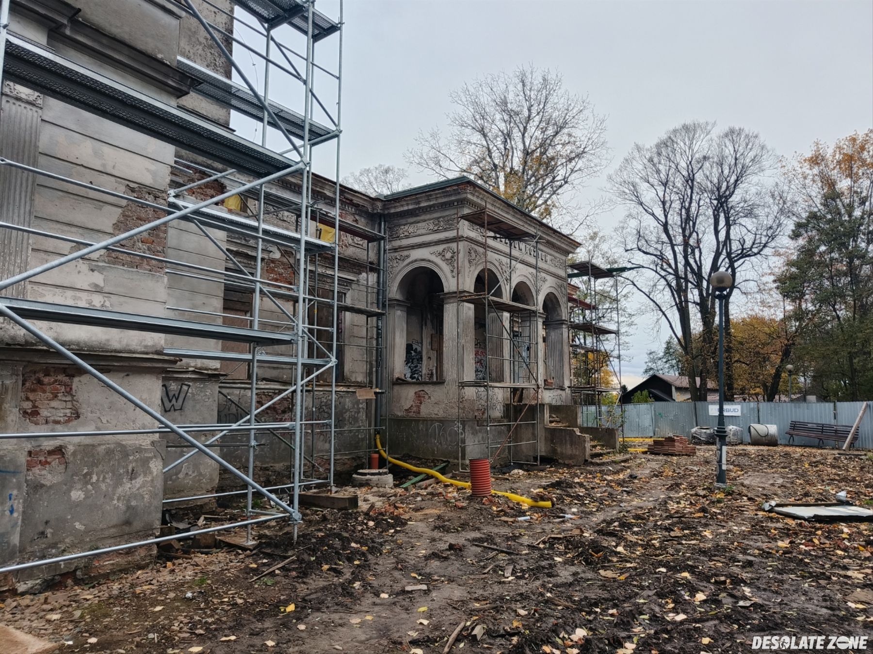 Stan na 14.02.2025 wszystkie wejścia do środka są dalej zamurowane, można wejść bez problemu na teren przez furtkę, ale o wchodzeniu do budynku można na razie zapomnieć.